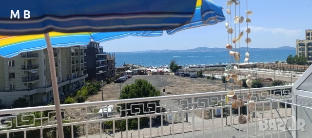 Апартаментът се намира срещу/само на метри от Южния плаж в Поморие.